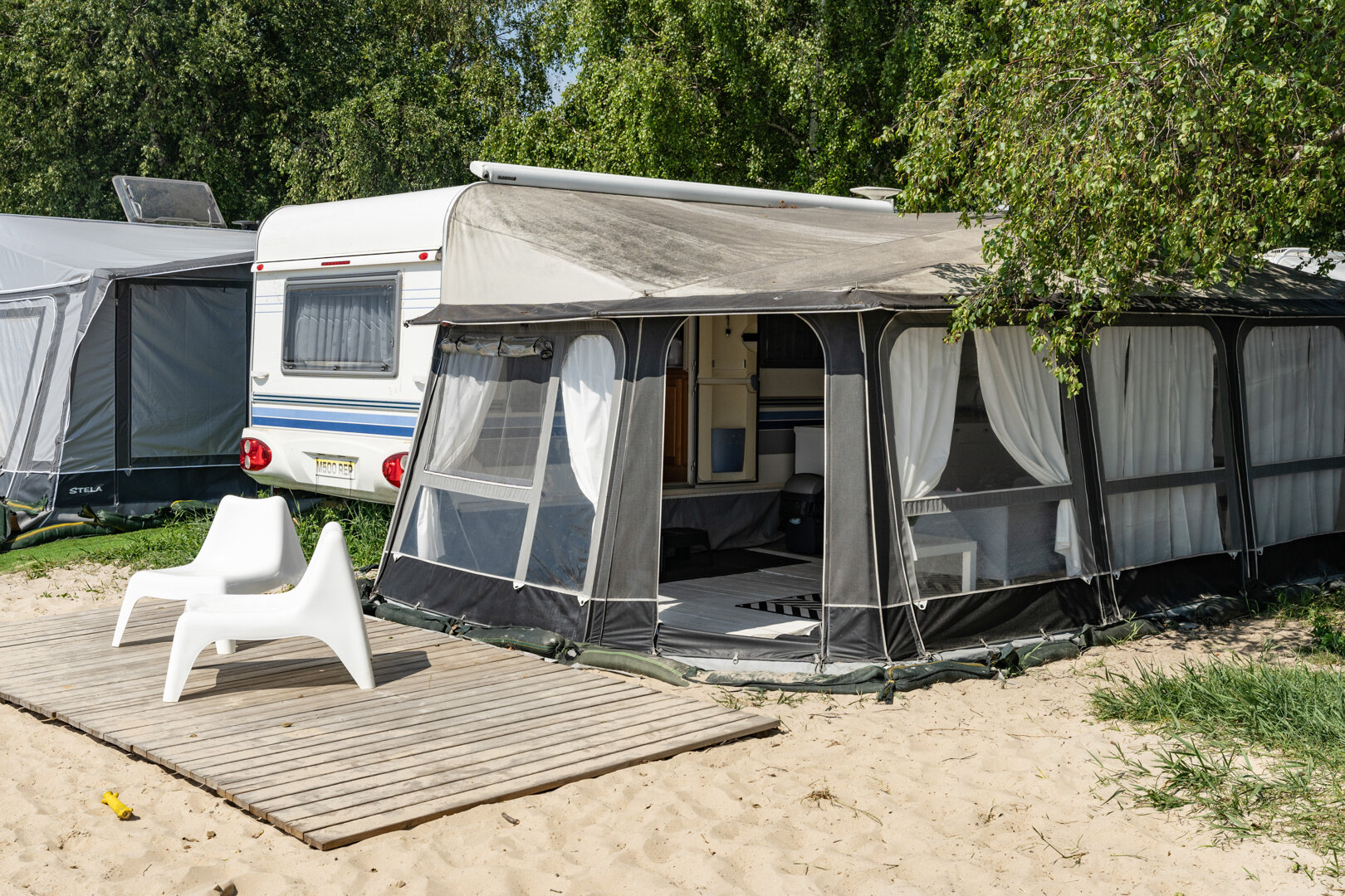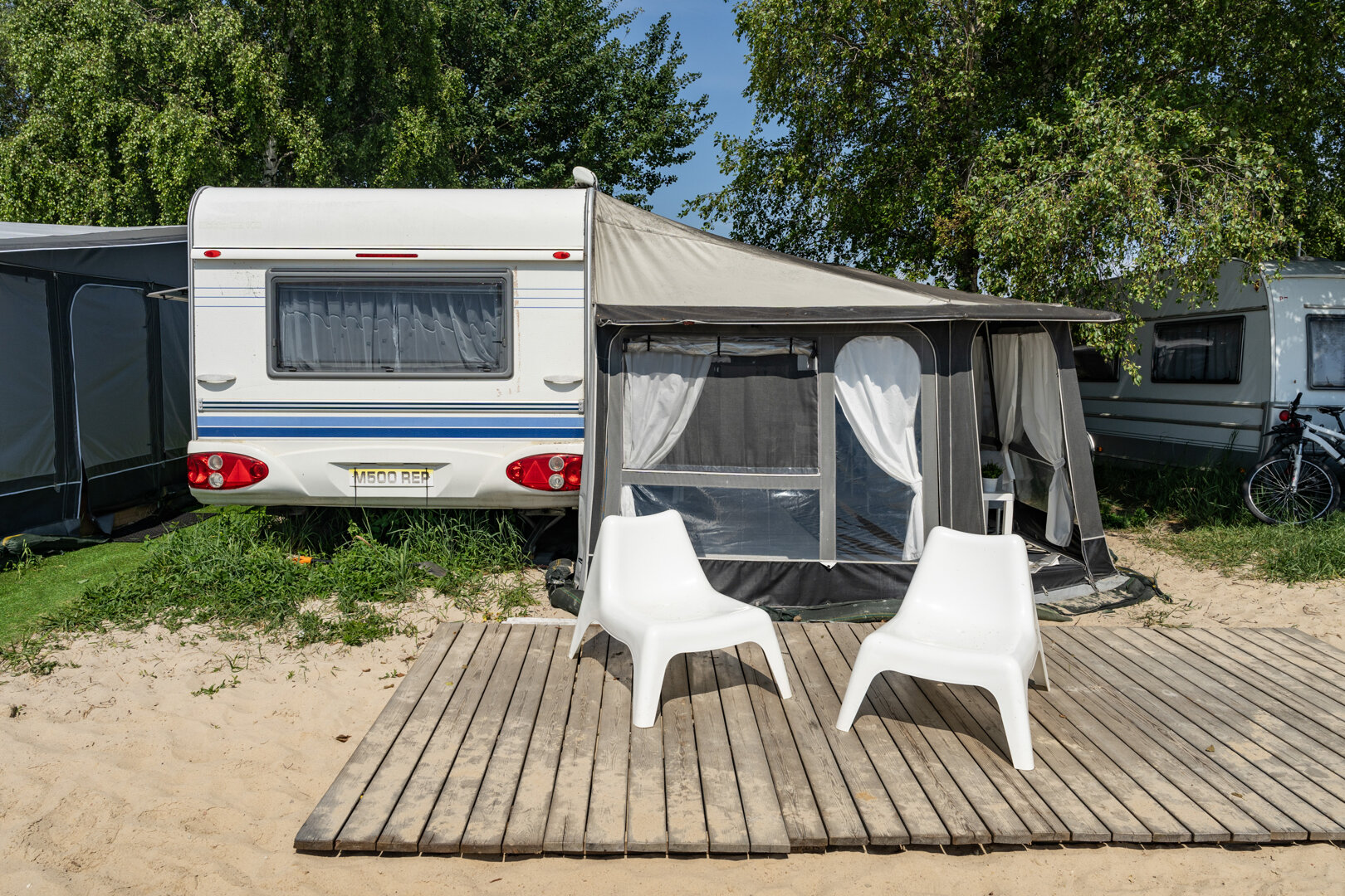 Przestronna przyczepa Hobby dla 5 osób – pierwsza linia przy plaży na Molo Surf, Jastarnia